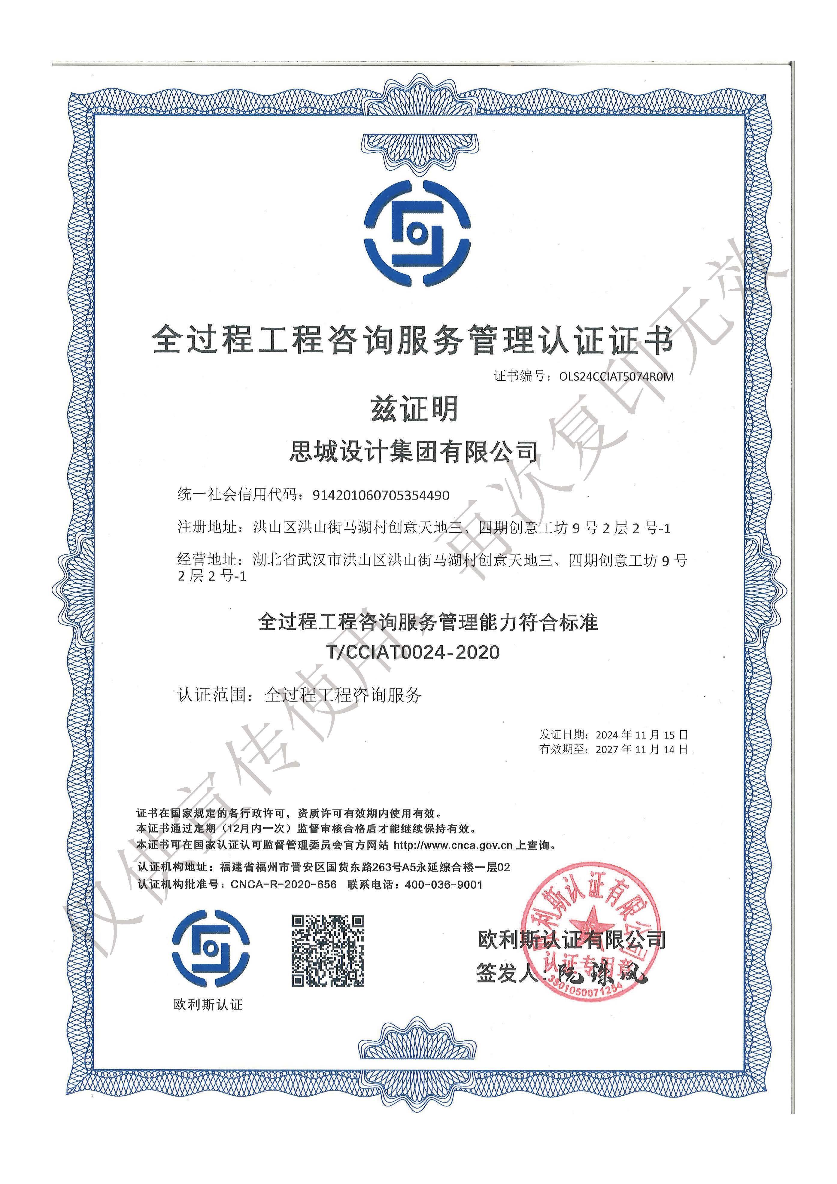 • 全過程工程管理服務認證證書