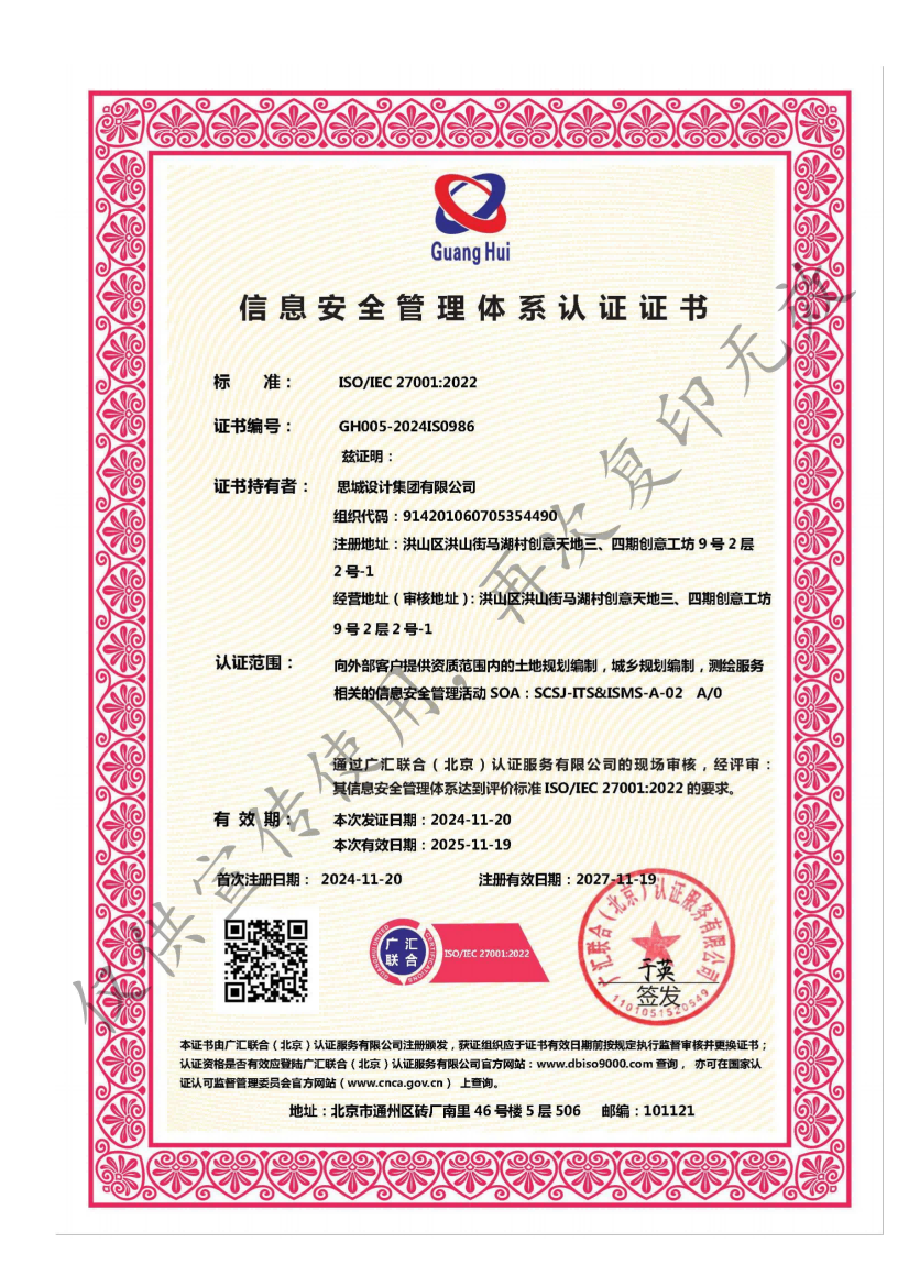 • 信息安全管理體系認證證書